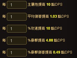 3,填寫其他相關數據,然後點擊計算即可查看各個主屬性對自己DPS的提升。方便你日後選擇裝備。